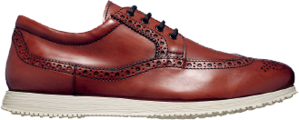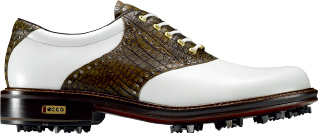 布洛克,即Brogue,源于16世纪苏格兰人和爱尔兰人在高地工作时穿的鞋,并慢慢演变成欧美男士们经典的尖头内耳式平底粗皮鞋。传统的布洛克鞋头有着精致的花卉钉孔图案,并将原本生硬的三接头转变成线条优美的侧翼。它是绅士身份的象征,也是搭配西装的不二选择。鞋头的特殊纹案设计让布洛克鞋流行至今,花纹对布洛克鞋很重要,人们以不同的鞋头花纹来分类,最常见的有:翼尖型全布洛克、半布洛克、四分之一布洛克和长翼布洛克。正是因为布洛克纹案的流行,高尔夫鞋业越来越多地使用了布洛克纹案的元素。以下介绍的四款鞋,通过对布洛克花纹的灵活运用,展现了布洛克鞋的魅力。