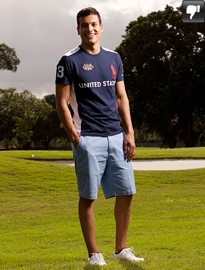 男士着装:有衣领和衣袖之高尔夫球恤衫(注:可以向你打球的高尔夫俱乐部询问着装要求,因为很多的俱乐部都有严格的着装规定。不过大部分俱乐部,只要你穿有领子的网球衫和polo衬衫都是可以的。)