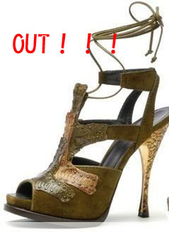 女士错误着装:T恤衫,吊带衫,紧身短背心,牛仔裤,迷你裙,运动短裙或长裤,网球短裤,沙滩短裤,钢钉鞋,休闲鞋,凉鞋,网球鞋或运动鞋/跑鞋