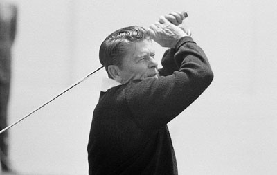 1976年6月8日,里根总统在洛杉矶乡村俱乐部第1号洞开球。