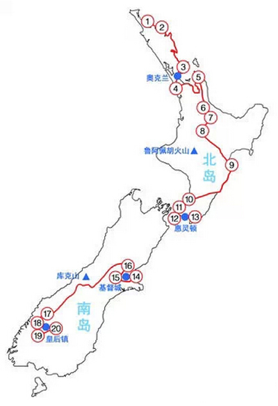 有人为醉打新西兰设计过以下线路: