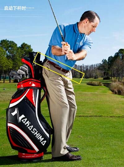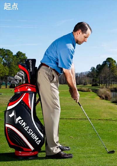 步骤3:下杆,触球,使臀部保持贴着球包,同时挤压腹肌,就像练习快速仰卧起坐时那样。你将会感觉到髋部伸展了,骨盆在向上转动。请你的朋友检查一下,站位时你的皮带应该是倾斜的,触球时皮带应该更接近水平。如果你能够在挤压腹肌(臀部也要用力)的同时,使臀部保持贴着球包,你就做对了。练习慢速挥杆,体会这个动作对挥杆的影响。(来源:高尔夫杂志)