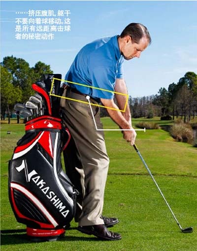 如果你的臀部离开了球包,就无法充分挤压腹肌,击球距离将受到影响