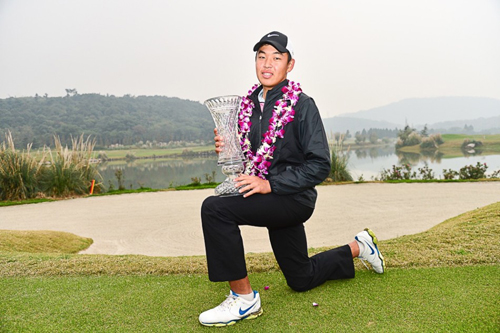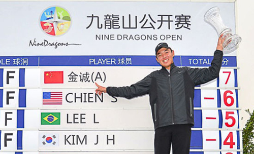 中国,嘉兴——在稳稳推进保帕推杆之后,16岁的业余小将金诚收获了九龙山公开赛的冠军。他不仅成为第三个美巡中国赛的中国籍冠军,同时也创造了业余球员在美巡中国赛夺冠的历史!
