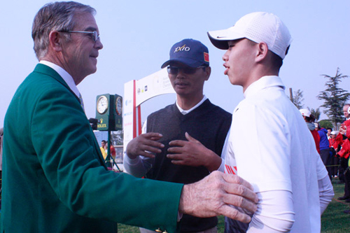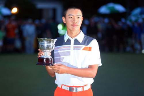 他的偶像伍兹1997年第一次穿上美国名人赛的绿夹克时,关天朗还未出生。而现在,这位初中二年级的学生已经和自己的偶像同场竞技了。