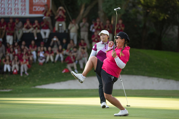 30岁的韩裔美籍选手金楚笼(Christina Kim)在墨西哥高尔夫俱乐部进行的奥查娅邀请赛延长赛的第2个洞成功保帕,击败了吞下柏忌的中国高坛一姐冯珊珊,结束了长达9年多的LPGA巡回赛冠军 荒,拿下个人职业生涯的第3个LPGA巡回赛冠军。