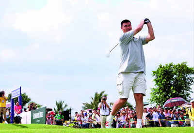 两年前的第二届观澜湖世界高尔夫明星赛,尽管姚明特制了全套装备,接受了三个月的“特训”,还临阵磨枪接受了张连伟的指点,但篮球巨星的高球首秀并不出彩,连姚明自己都说“打到后来都不好意思记成绩了”。今年的赛场上,他的表现依旧不稳定,偶尔能打出漂亮的一击,偶尔又出现“剃头”。在接受采访时,姚明戏称自己打高尔夫球堪比文科生学理科—有难度。