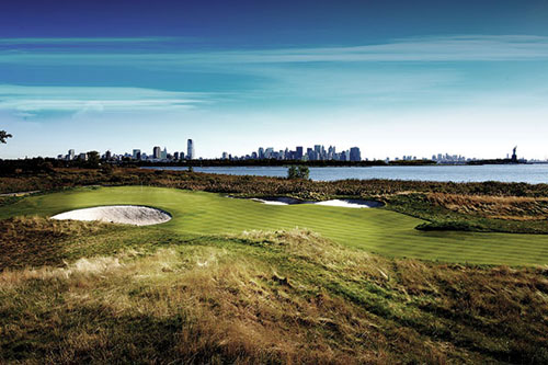 新泽西的自由国家俱乐部:以纽约城还有自由女神像为背景,在比赛中你有很多时候都会看到极富戏剧性的场景,有15个洞可以不间断的看到曼哈顿的天际线。这里的球道都很经典,给我留下印象最深的是2号洞。在这个3杆洞看自由女神像非常清楚,她仿佛就伫立在了果岭上!