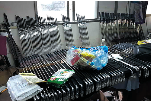 据估算,假冒球杆的年产量高达200 万件。如果这些球杆首尾相连,其长度将超过8000 公里,相当于在哈尔滨市和三亚市之间往返一趟。而且,这个数字并没有涵盖数百万件假冒的高尔夫球、球包、手套和球服等。