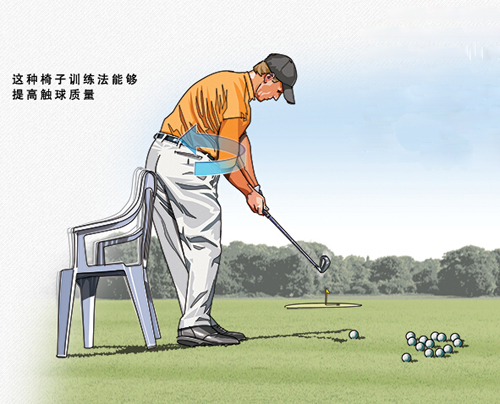 如果你在下杆和触球时抬高上体,一定会打薄。要避免这种失误,使上体保持合适的前倾幅度,可以在触球过程中使臀部保持向外挺。想象你正坐在一堆稻草上。训练时,可以让臀部贴着椅子背,这样击球。当髋部前移时,使臀部与椅子背保持接触。这样,你就能使站姿保持不变,实现稳固触球。(来源:《高尔夫》杂志)