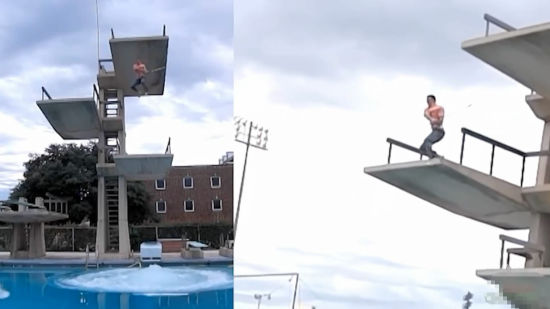 第一段:年轻教练爱折腾 玩跳水挥杆