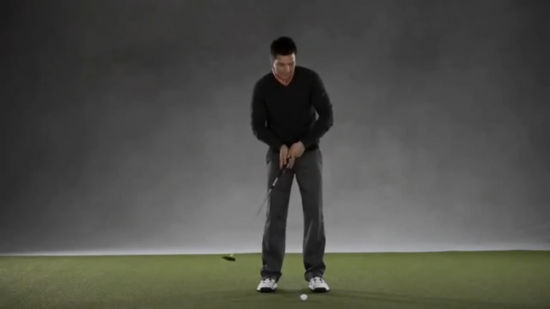 在最后一段视频中,科莫是针对了大多数业余选手在推杆的时候范的错误。他们往往会用手腕发力去抨击小球,而且在击中小球之后,球杆不是应该继续往下走,而是应该向上,铁杆才是往地下走。