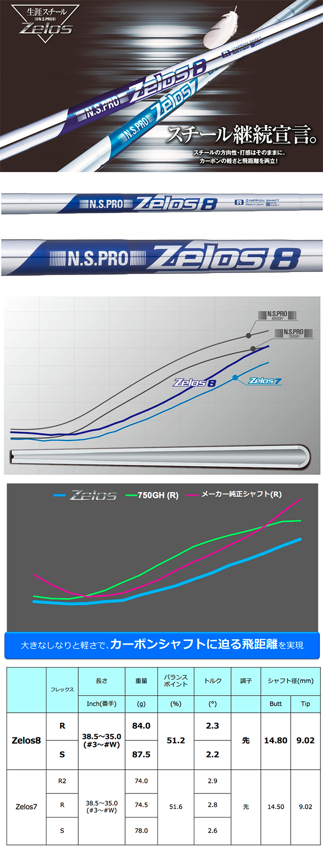 新N.S.PRO Zelos 8杆身刚刚被发布。Zelos 7杆身作为N.S.PRO轻钢系列里对并不太讨人喜欢的NS750杆身的补充,市场需求还是比较大的。Zelos系列的设计初衷是为了让球手获得较高的弹道和碳素杆身那样轻松的挥杆感觉。