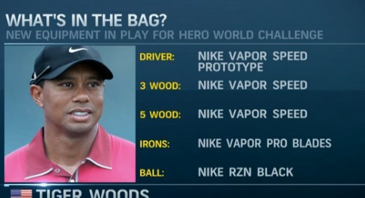 他的这次复出新装备中,包括一支Vapor Speed Prototype的1号木,Vapor Speed fairway的球道木杆(3号和5号),Vapor Pro blade的铁杆。他还将首次在比赛中使用耐克的RZN Black高尔夫球。