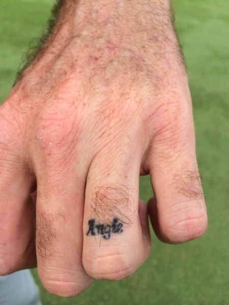 是的,在他手指上的这个纹身,正是巴巴-沃森妻子的名字,Angie---安琪。付给了无名人士60美金,一个小小的纹身并没有花费太多钱。而那个给巴巴纹这个标志的人,并不知道沃森是谁。