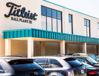 Titleist品牌的含义是“冠军”,它生产的高尔夫球的的确确是冠军,无论世界顶级职业巡回赛使用率还是球具市场占有率,均排名No.1。高尔夫球的销售额占到了Titleist总收入的50%以上。我们的Titleist美国总部行,便从高尔夫球部门所在的马萨诸塞州费尔黑文市开始。其实,Titleist高尔夫球总部最早位于Acushnet小镇,这也是其母公司Acushnet的名字来源。后来,公司总部先搬到邻近的新贝德福德镇,上个世纪90年代又搬到现在的费尔黑文市。它隐藏在密密的一排大树后面,灰色的楼房只有四层高,比我们想象中的世界第一高尔夫球品牌总部“质朴”许多。同时,这里也是Acushnet旗下另一品牌FootJoy的总部。