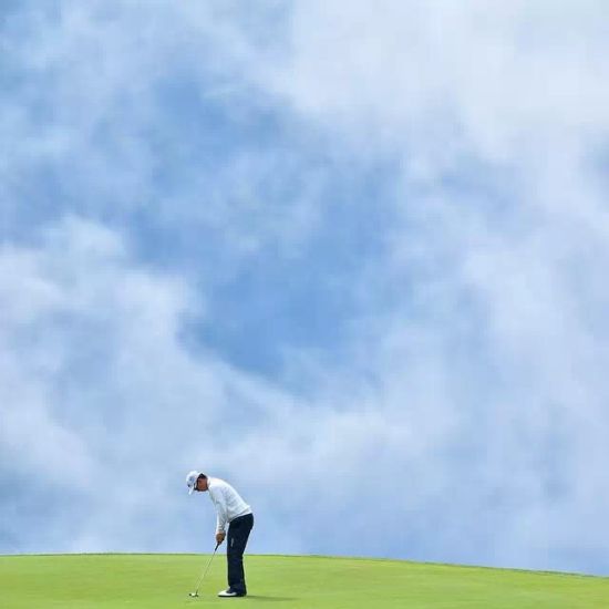 1.日本球手川村昌弘在欧美嘉欧洲大师赛上进行推杆时的照片。看见如此纯净的天空和绿油油的草地,仿佛如画卷般的美丽,让人不敢触碰,生怕一不小心抹掉了色彩。