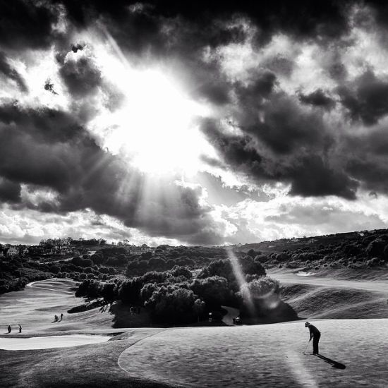 3.西班牙的NH集合公开赛第9洞,阳光穿越白云照射在球场上,美轮美奂。灰暗的色调但却在一缕阳光的透射中显得是如此的大气磅礴,让应有的色彩压抑感荡然无存。
