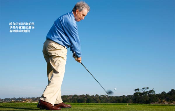 你的开球距离不足,因为你不知道如何有效地将力量由挥杆顶点转移到下杆动作中。你的失误导致下杆过程中过早释放出很大一部分能量,使得触球时剩余的能量大为减少。你需要学会在下杆时制造、储存更多的力量。