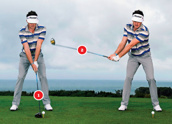 基根-布拉德利:收杆时能够保持住身体平衡,则说明挥杆没有超过控制范围。挥杆的关键在于能够保证杆面正中触球。即便我偶尔能够开出350码的距离,也不是因为我一心想着距离,而是触球扎实的结果。