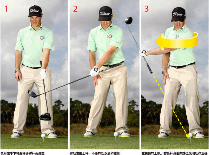 你想要的感觉?挥杆起于左臂止于双肩。如果转动双肩起杆,就会冒着向内且低于挥杆平面拖曳球杆的风险。挥动、上翘和转体。当你动作正确时,加上右手复制同样的感觉。你会立刻感受到好的起杆会让余下的挥杆动作变得容易。(来源:《高尔夫》杂志)
