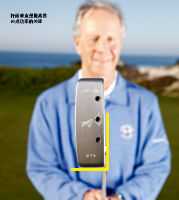 不要在杆头底面触地的情况下调整杆面角度,你应该将杆头置于身体前方,使得自己能够清楚看到杆面的角度。每次击球前都这样做,以后你就能一眼看清杆面是否垂直。