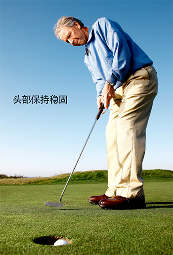 推击时,触球后要盯住球下方的一个点。头部保持稳固是自始至终使杆面保持垂直的关键。(来源:《高尔夫》杂志)