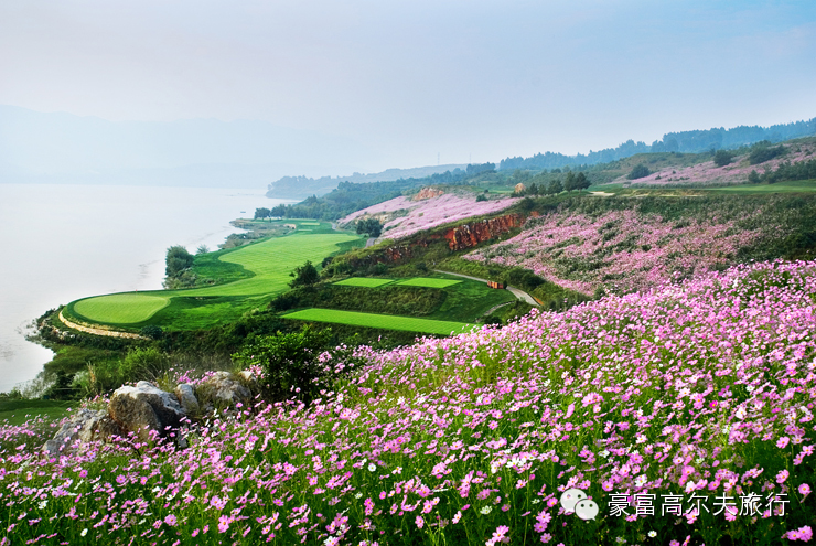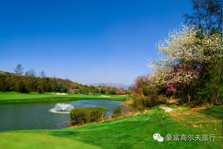 春城湖畔度假村拥有山景和湖景两个著名的18洞高尔夫球场,春天来时,满山遍野的报春花、紫罗兰、八仙花含苞怒放,朵朵的花儿盈盈点点,散落在场内,整个球场如同镶嵌在湖畔山坡上的一块块绣花地毯,美丽的令人炫目。