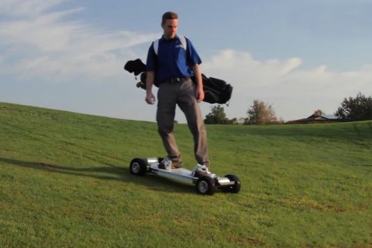 “高尔夫滑板”是高尔夫球车的全新替代产品。滑板的时速达近20公里,踩着它可以在球场的山丘之间顺畅穿梭,感觉就像在滑雪一样。