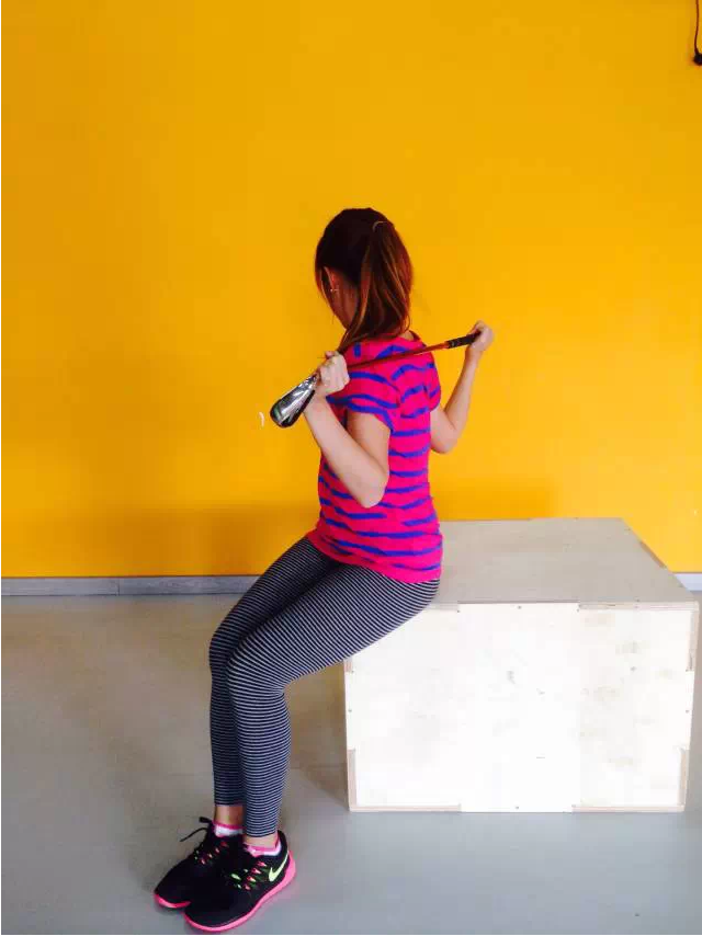 5、当您向左右旋转时您的伙伴可以帮您看出您的胸椎转动是否超过45度