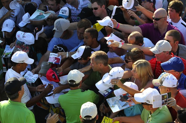 与其它体育项目不同的是,高尔夫选手会与观众近距离接触。因此,任何观众都有机会当着球星的面说话。由于机会来的短暂,有的球迷在说话时可能太激动,以至于口不择言,出言不逊。如果是面对老虎伍兹的话,则会紧张10倍。