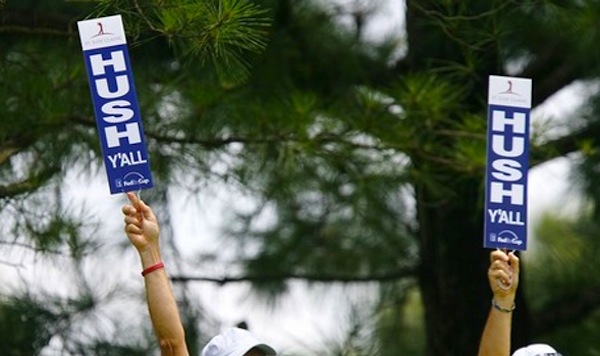 如果你光临过巡回赛事,一定对巡场员记忆犹新。每当在选手发球前,巡场员就会举手示意安静,这是在场的每一个人都停顿了下来,并保持安静。每个人都能遵守规矩,除了那些无视规则仍我行我素的白痴之外。