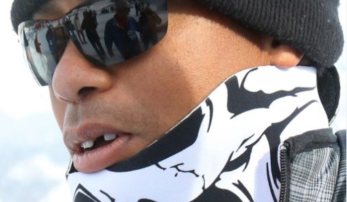 伍兹头戴一个黑色绒线帽子,嘴上捂了一张骷髅花纹的丝巾,另外还戴了一个大墨镜。乍看过去,很难认出那是高尔夫巨星。而照片是他的丝巾放低的时候拍的。