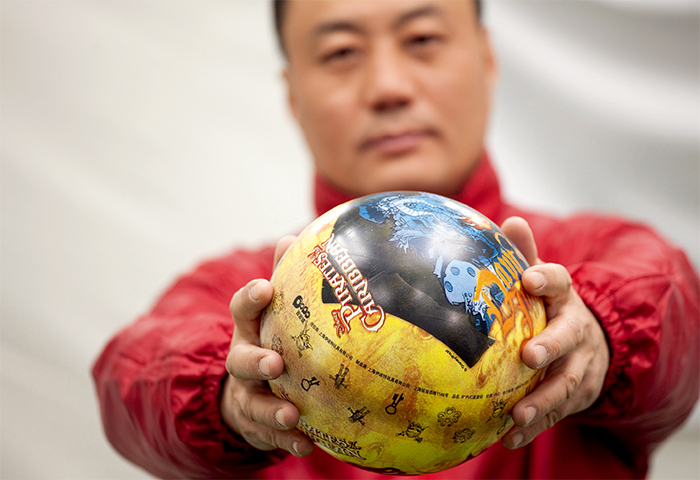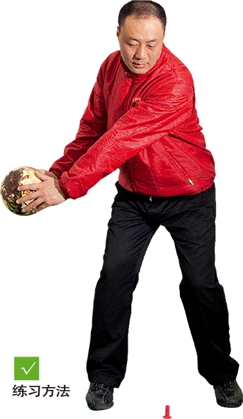 如图所示,双手扶住一只球,模仿上杆和下杆的动作,体会手腕的翻转时机,你就会逐渐戒掉拧手腕的毛病。