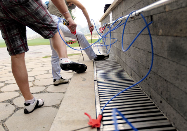 结束18洞之旅后在此处用高压气枪清洗沾满草的球鞋。