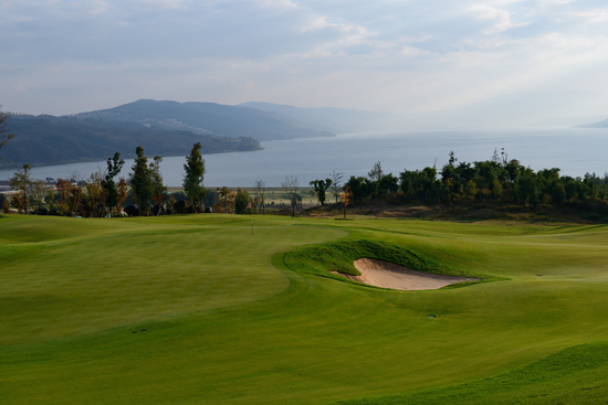 湖景球场由杰克·尼克劳斯本人担纲设计,其设计充分展现了阳宗海宽阔壮美的湖光山色,景色堪称绝美。前9洞蜿蜒于山地沟壑之中,但湖景一览无余,每个球洞都能看到壮阔的湖面。后9洞则延伸于滨水地带,与阳宗海水景有了一种更亲密的接触,13号、14号和15号洞都在湖边蜿蜒伸展,别具特色,风光无限。