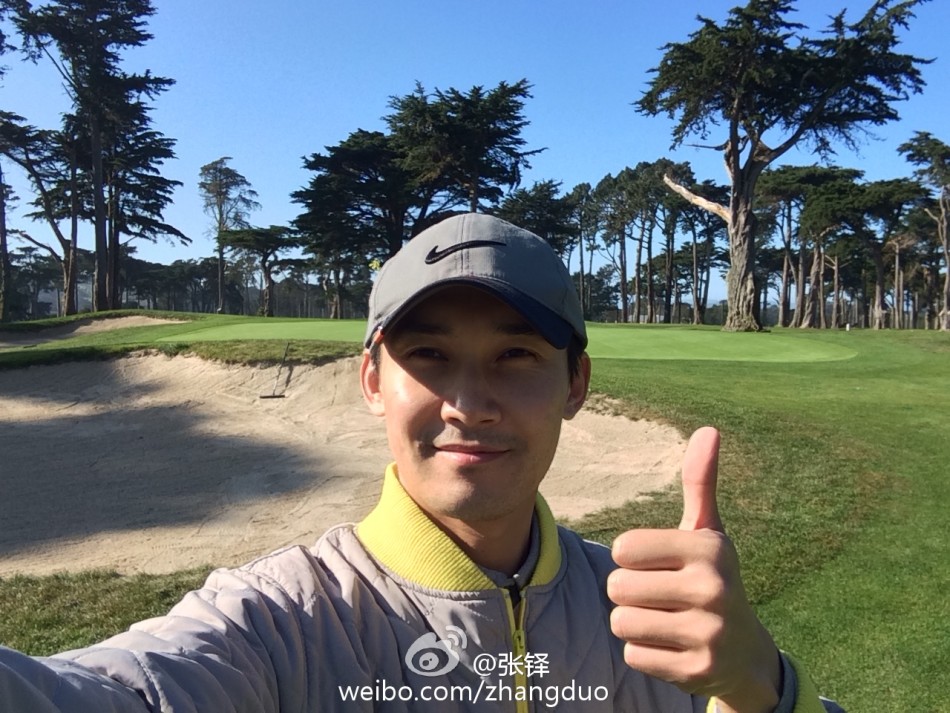 中国演员张铎在上周末来到美国斯坦福大学高尔夫球场参观,近日就亲自下场体验美国高尔夫球场,惊叹球场“好美丽,让我如此开心。”