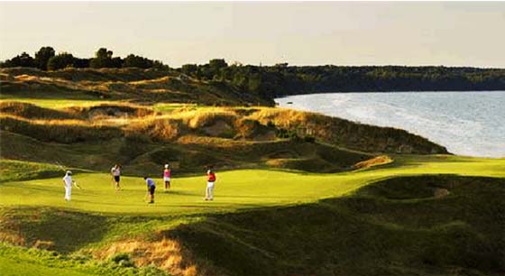 在呼啸海峡球场的18个球洞的其中14个都可以看到密歇根湖的美景,而其中的8个就在水的旁边。最好的打球时间是清早,你可以边打球变看日出。