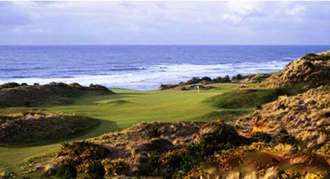 金塞尔球场被海洋环绕,和一块尖头的陆地相连。来这里打高尔夫的人可以享受360度的风景,似乎在世界的边缘。周围还有灯塔、城堡和教堂。