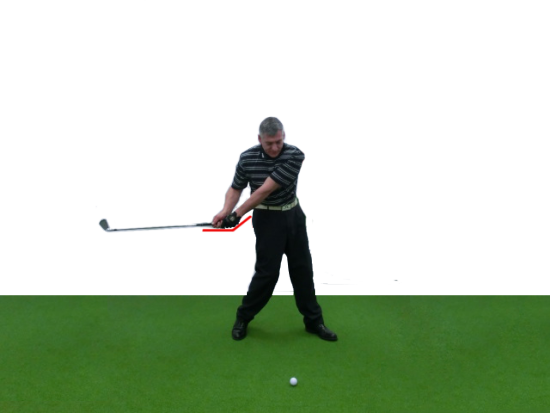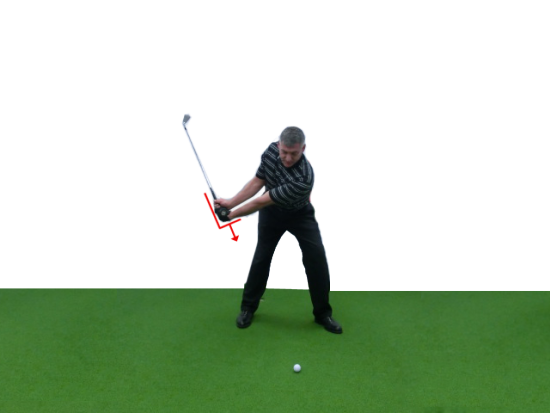 与职业球手所展示的“延迟释放”相对比,距离不足的球手是过早释放杆身和左臂夹角的典型。这个错误被称为“过早释放”(如图5),通常由外到内的挥杆路径所造成。