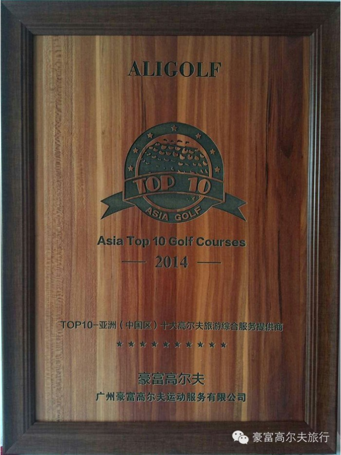 亚洲(中国区)十大高尔夫旅游综合服务提供商是对豪富的肯定和支持,充分说明了豪富高尔夫卓尔不群的高尔夫服务实力。豪富并且深感鼓舞,必将再接再厉,将更优质地为广大高尔夫爱好者提供上盛的高尔夫服务,推出更多有品位兼有一流性价比的高尔夫产品给大家选择,并为中国高尔夫做出更多贡献。