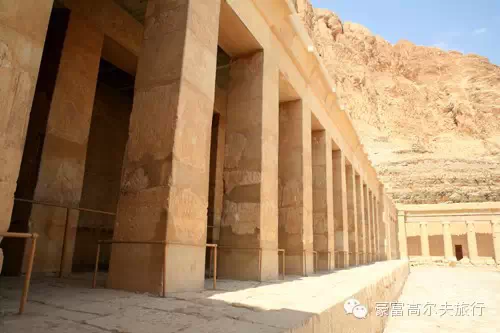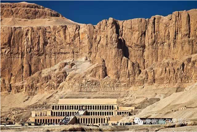 神庙坐落在帝王谷北面,依山而建。此神殿三层楼设计方式,开阔简明,很有现代建筑的风格。其建造者哈特谢普苏特女王是古埃及第一位女王,武则天一般的存在。其为法老嫡女,与其弟结婚,夫死后,夺其夫庶子帝位,自立为王。身死后其庶子重登大典,挖其棺木,毁其宫殿,消除一切有关女王的材料。