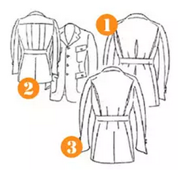 2.有4个口袋,背部有2个箱型褶,背部有半条腰带。