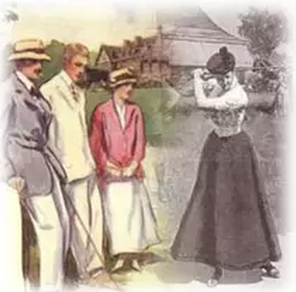1870年,高尔夫球会开始出现时,打高尔夫被视为社交活动的一种,男性与女性会在活动上结识。因此,当时女性打球时需要穿得美丽和时尚。维多利亚时代的女子被贴身的束紧胸衣与宽大的裙撑阻碍了行动。她们的罗裙下有层层叠叠的衬裙、束胸内衣、腰封、剪裁绷紧的上衣。当然,因此她们难以轻松地挥动杆棒,甚至连抬头看球打到何处时,也被挡着阳光的宽大面纱的帽子阻碍着,也得担心假发会随时掉下来。