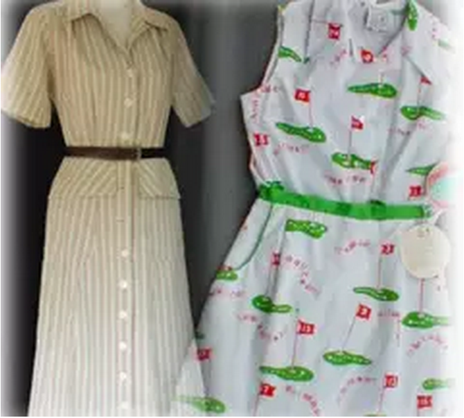 女子高尔夫服装变更历历在目:长裙——紧身女中裤——迷你超短裙;样式上,超大型、宽松型、打褶型——松垂型——超短型;长度上,长至脚踝——19英寸到膝盖长——现在的大腿根部。显而易见,裙子或裤子的长度是越来越短了,布料也越来越少了。