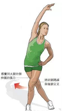 髂胫束是位于大腿外侧下方的带状结缔组织。经常做此伸展动作,可预防因长期下场走路膝部外围发炎 (髂胫束症候群) 所造成的疼痛。