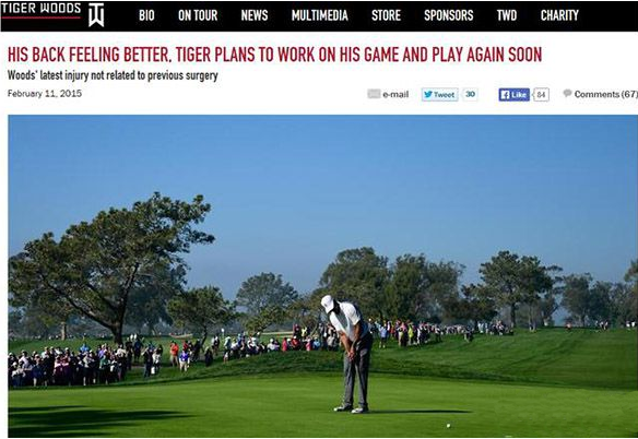 伍兹道出,他上周在多利松打完11个洞之后就退赛所遭遇的伤病与去年春天进行的腰部手术无关。他表示,他每天正在接受物理治疗,而且“感觉好一些了“。他计划下周在自己位于南加州的球场上练球,他将会重新评估自己的球技。