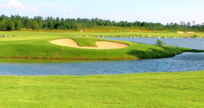 五乐台度假区占地12000亩,作为景区内第一个高尔夫球场——飞鹭林球场总长7335码,是锦标级高尔夫球场,也被建造者骄傲地称作“亚洲最美的生态花园球场”——宽阔的球道、起伏的果岭、精致的沙坑……掩映在300多万株大大小小的乔木、花灌中;放眼望去,若隐若现;走到跟前,蜂蝶绕膝。