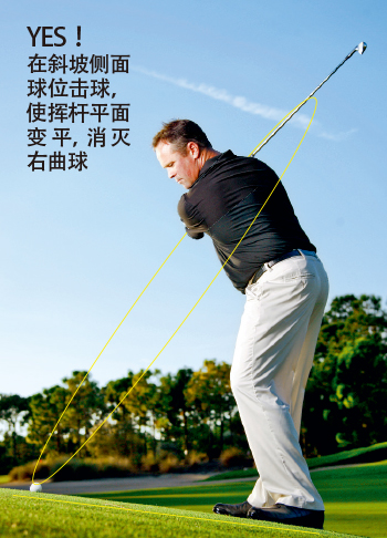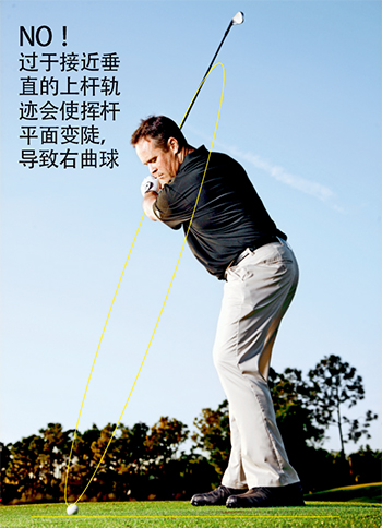 你是一名右曲球老病号,因为你的挥杆平面过于接近垂直。