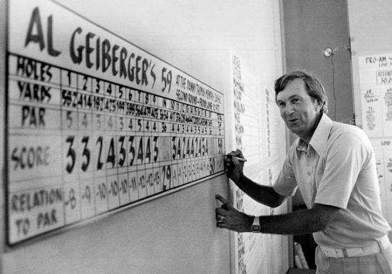 1977年6月10日,67岁的奥尔·盖伯格在孟斐斯精英赛的第二轮上打出了59杆的成绩,成为美巡赛历史上第一个打出59杆的球员。那一轮盖伯格一共拿下11只小鸟和一只老鹰,最终的成绩为-13。